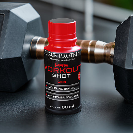 PRE WORKOUT SHOT de Black Protein est un complément à prendre " avant " votre activité physique, présenté dans une petite flasque pratique à utiliser et à transporter.