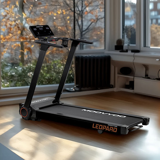 Le tapis de course Moovyoo Léopard est un modèle compact et pliable, idéal pour un usage régulier (4 h/semaine).