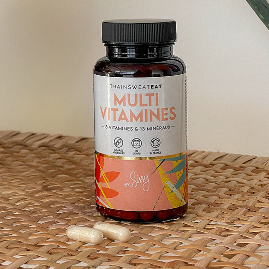 Le Multi Vitamines de TrainSweatEat, c'est un complexe de 13 vitamines et 13 minéraux qui va vous aider à couvrir vos besoins journaliers en nutriments essentiels.